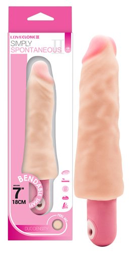 Hautfarbener, geäderter Vibrator in Penisform mit rosafarbener schmaler Eichel und prallem Schaft.