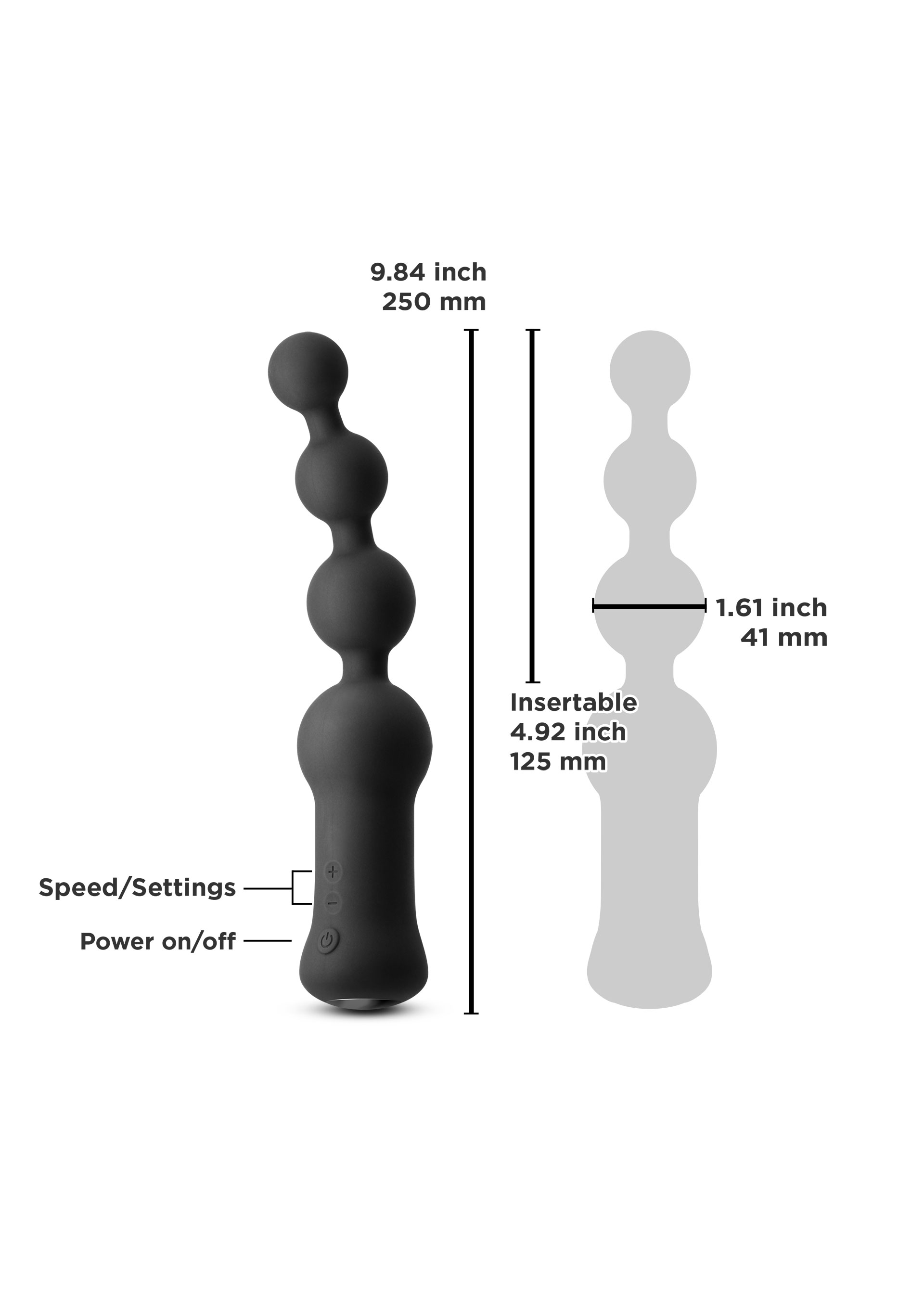 Abgestufte Vibrationsperlen bieten ein tiefes Rumpelgefühl, das mit weichem Silikon umwickelt ist, das für alle Gleitmittel geeignet ist.