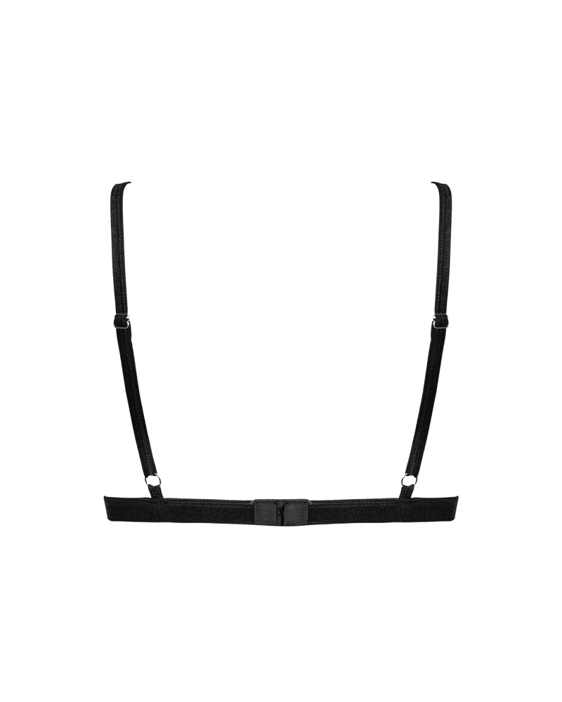Erlebe zeitlose Eleganz mit einem Hauch Sinnlichkeit – der schwarze Soft-BH Mibelia von Obsessive verführt mit seinem schlichten und dennoch verführerischen Design. Dieser BH aus weichem Stretchnetz ist mit raffinierter Spitze und einem kleinen Schmuckelement zwischen den soften Cups versehen.