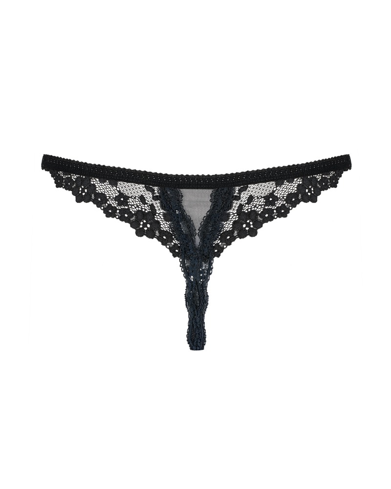 Verführerische Spitze: Der schwarze String ouvert Letica präsentiert sich in feiner, elastischer Spitze, die die Sinnlichkeit betont und gleichzeitig angenehm auf der Haut liegt.