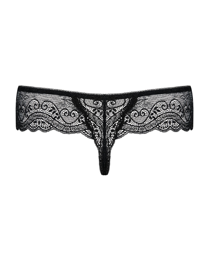 Der Miamor String von Obsessive ist komplett aus feiner schwarzer Spitze gefertigt, die deine Haut zart umschmeichelt und dem Dessous eine sinnliche Eleganz verleiht. Tauche ein in ein Gefühl von Luxus und Sinnlichkeit.
