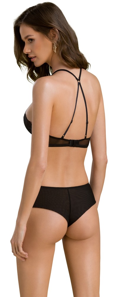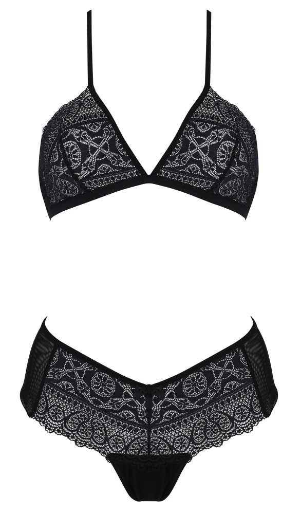 Der Kerria Bikini aus der Eco Collection von Passion besteht aus einem Soft-BH und einem Slip aus elastischem Powernet mit bildschöner Spitze in den Fronten. Der Slip ist über dem Po doppellagig gearbeitet. Im Rücken kreuzen sich die BH-Träger in einem Ring und sind für optimale Passform verstellbar.