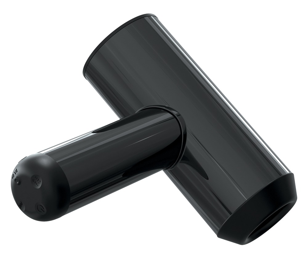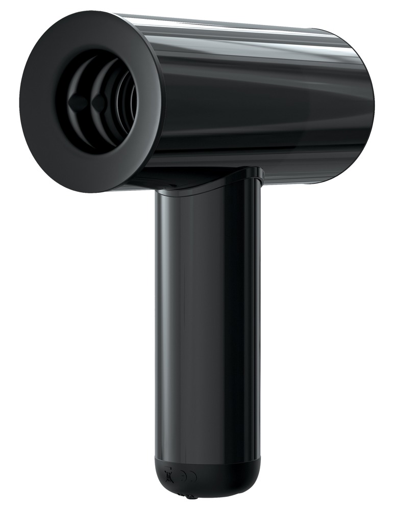 Schwarzer Masturbator, an beiden Seiten geöffnet und wasserdicht. Dadurch gut geeignet für Aktivitäten im Bad.