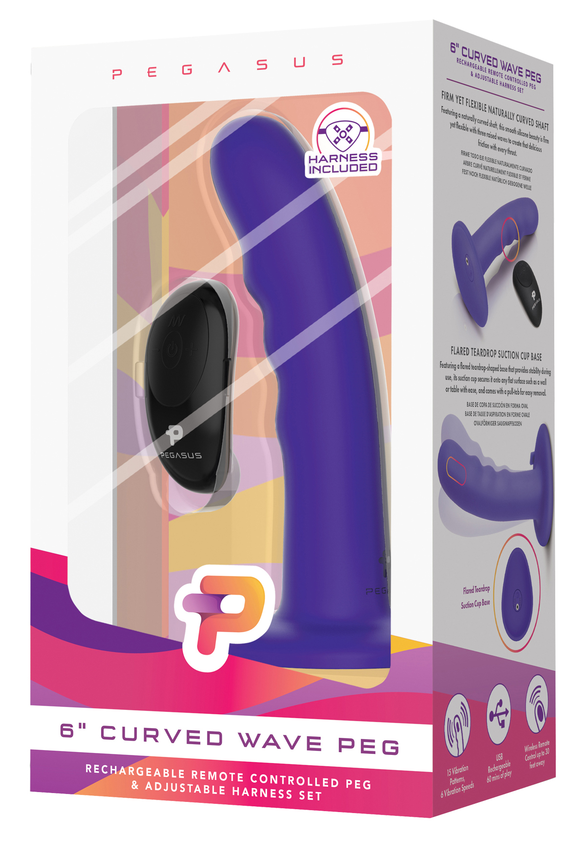 Sie schwimmen im Genuss durch Wellen kraftvoller Stimulation in all Ihren Vergnügungszonen. .Der PEGASUS 6 "Curved Wave Peg hat einen natürlich gekrümmten Stiel, ist fest und flexibel und hat gewellte Perlen, die bei jedem Stoß einen herrliche Stimulation zu erzeugen. In Kombination mit einer Funkfernbedienung, die bis zu 30 Fuß entfernt funktioniert, ist dieser vielseitige Vibrator für Strap-On-Sex und Pegging geeignet. Er kann in der Badewanne oder in der Dusche benutzt werden. Der Saugnapf haftet leicht auf flachen Oberflächen und verfügt über eine ovale Basis, um Stabilität während des Gebrauchs zu gewährleisten. 15 Vibrationsmodi, 6 Vibrationsgeschwindigkeiten Mit drahtloser Fernbedienung, bis zu 30 Fuß entfernt funktioniert. Wiederaufladbar durch USB . Aufgeladen hat er eine Funktionsdauer von 60 Minuten Oval geformte Basis für eine bessere Stabilität Integrierte Zuglasche zum einfachen Abnehmen Harness inklusive