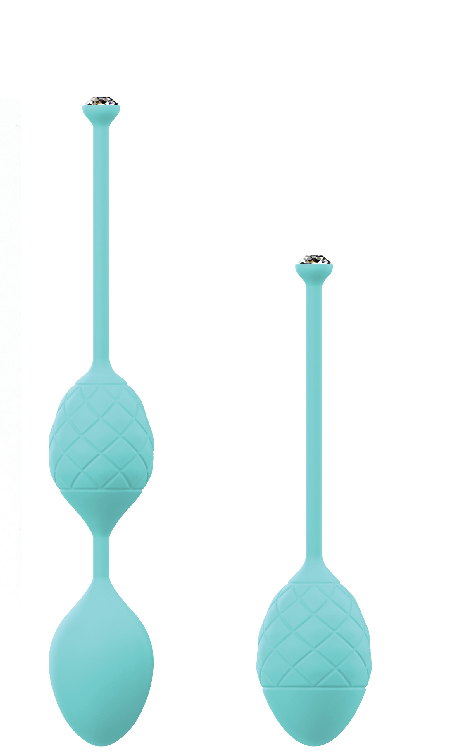 Liebeskugel-Set, bestehend aus 1 Einzelkugel und 1 Kugel-Duo in elliptischer Form inklusive elastischem Rückholbändchen mit Swarovski®-Kristall.