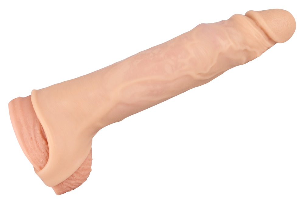 Samtig weiche Sleeve mit markanter Eichel und Äderung. Unterstützt das männliche Stehvermögen und verlängert den Penis um rund 5 cm.