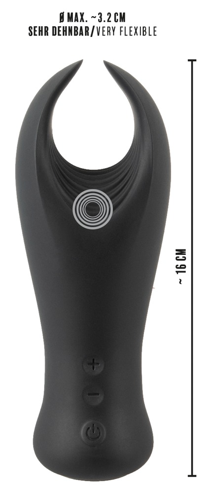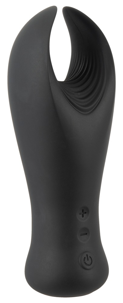 Der Cock Vibrator von Rebel ist ein Masturbator mit flexiblen Vibro-Flügeln, die den Penis in die Zange nehmen und mit den ausgerprägten Reizrillen massieren und stimulieren. Für einen Handjob mit viel Abwechslung sorgen unter anderem auch die 10 Vibrationsmodi, die ganz bequem per Knopfdruck direkt am Toy geregelt werden können.