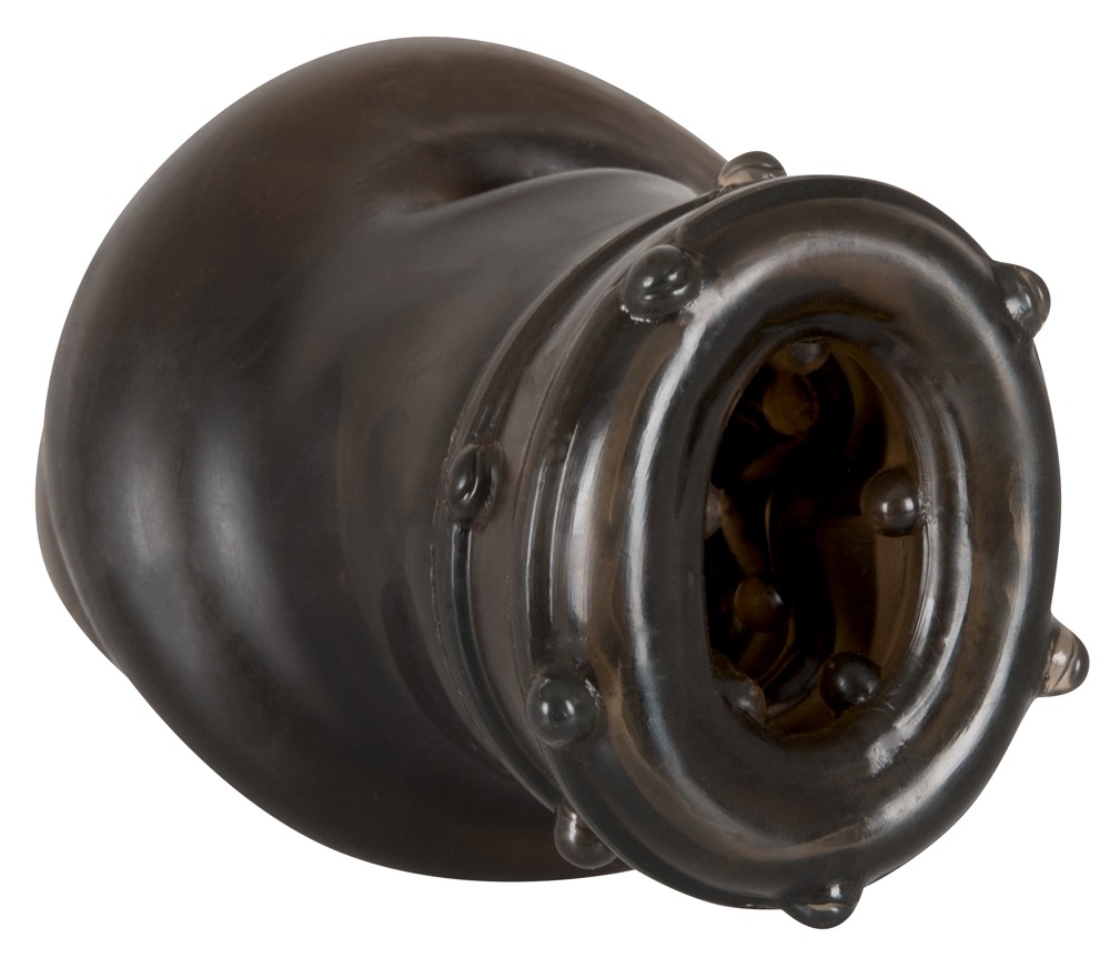 Die Hülle ist vorne geschlossen und außen gerillt, innen begeistert der Lustkanal mit reizvollen Noppen und Rillen.