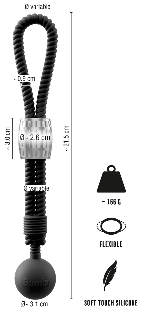 Es gibt drei aufregende Tragevarianten: die Schlaufe kann um den Penis gelegt werden, um die Hoden oder um beide zugleich. Das schwingende Kugelgewicht verstärkt dabei die Erregung, indem es bei jeder Bewegung reizvoll hin und her pendelt. Hergestellt aus seidig softem Silikon, bietet die Schlaufe höchsten Tragekomfort.