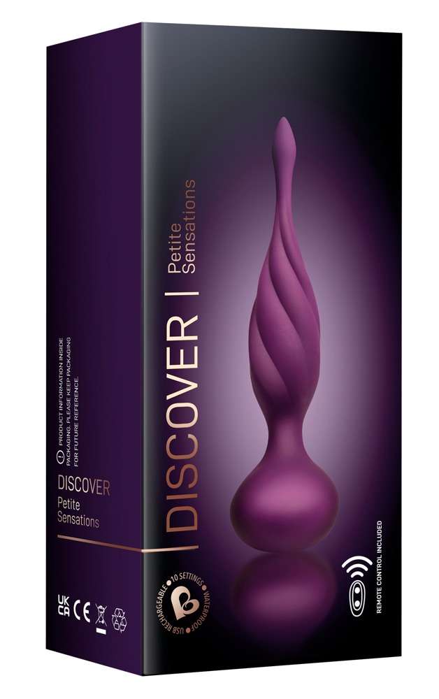 Raffiniert geformter, zierlicher Vibro-Analplug Discover aus der Petite Sensations-Serie von Rocks-Off mit ausgeprägter Spiral-Reizstruktur und enorm verjüngter Spitze, die beim Vibrieren aufregend flattert. Perfekt für alle, die den Nervenkitzel des analen Spiels kennenlernen/erleben wollen.