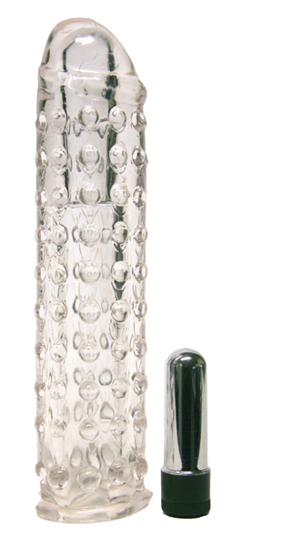 Genoppter Penis-Überzieher aus extra-dickem Silikon, sehr flexibel, mit Mini-Vibrator und Batterie