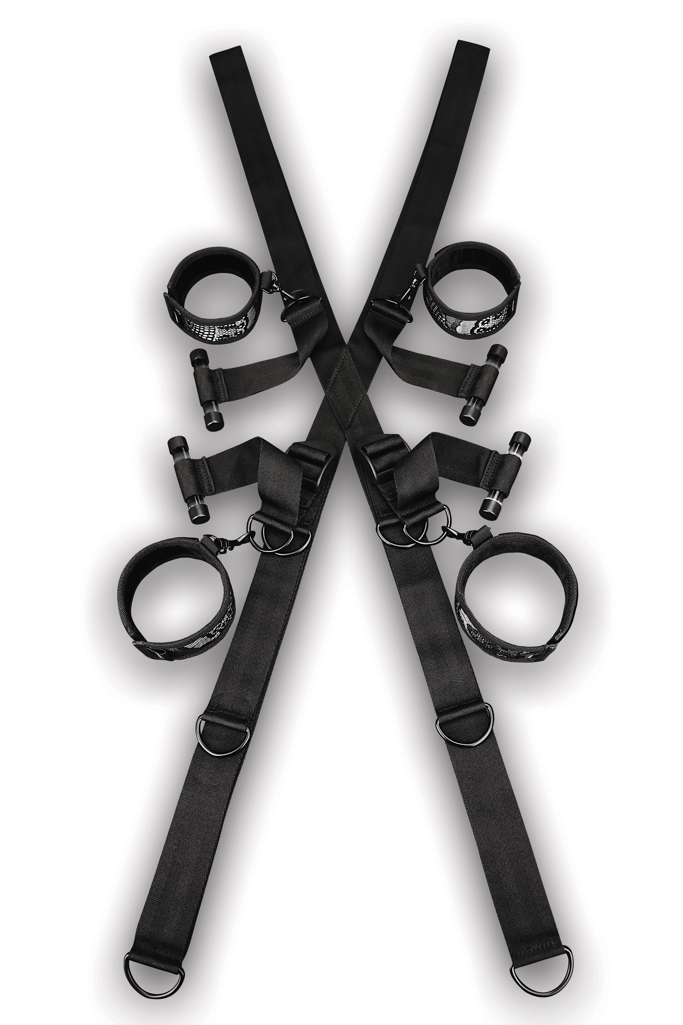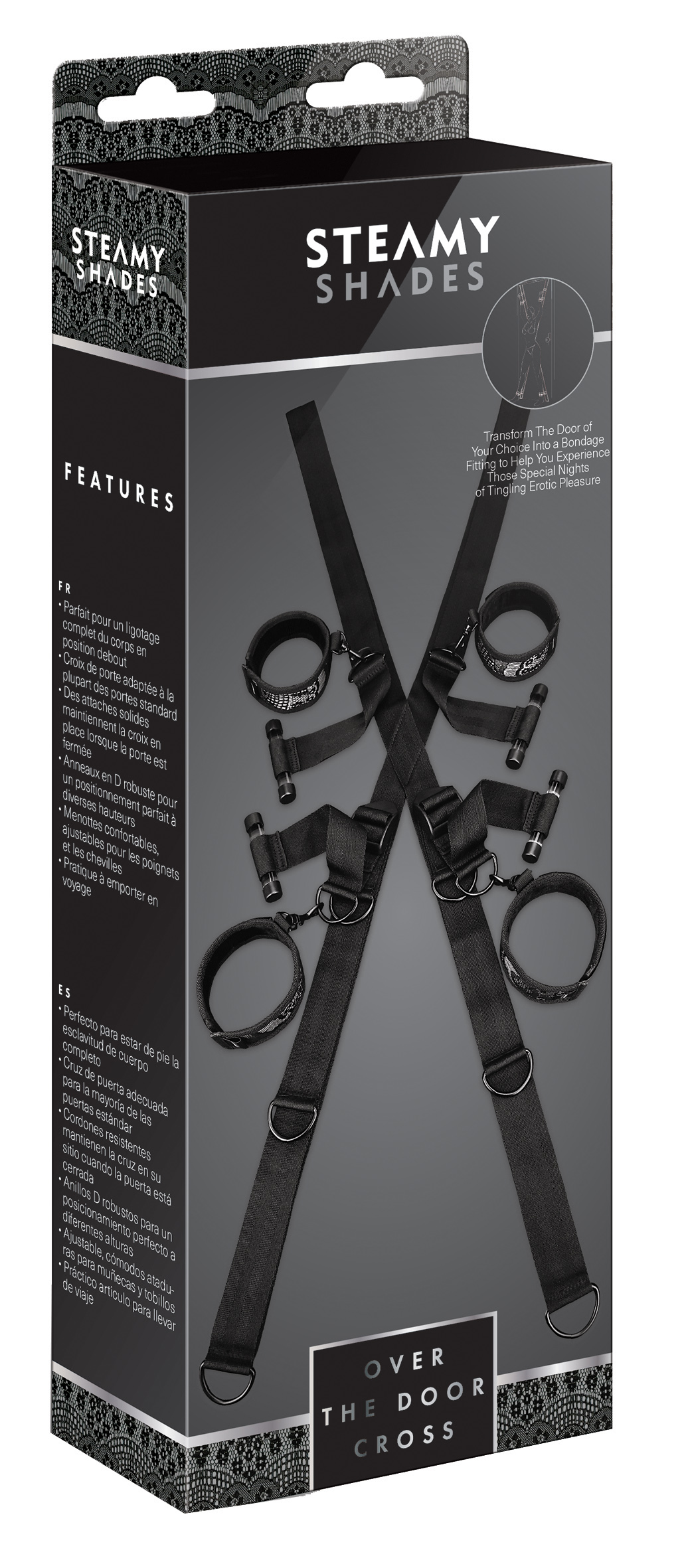 Türkreuz geeignet für die meisten Standardtüren, stabile Aufhänger halten das Kreuz an Ort und Stelle wenn die Tür geschlossen ist, robuste D-Ringe für die perfekte Positionierung in unterschiedlichen Höhen, bequeme, verstellbare Manschetten für Hand- und Fußgelenke, praktisch für die Mitnahme bei Reisen Riemen (100% Polypropylen); Manschetten (100% Polyester); D-Ringe (100% nickelfreies Eisen); Verstellschnallen (100% Kunststoff); Aufhänger (100% Acryl).