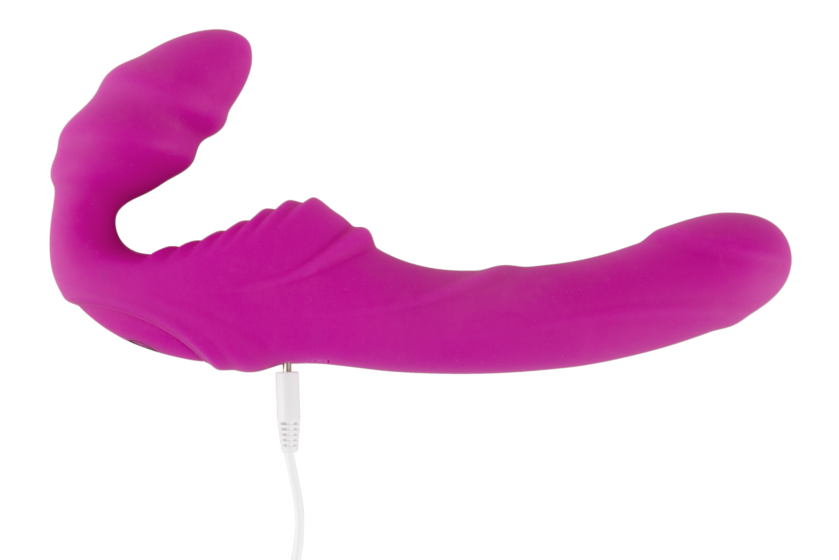 - zwei Vibratore in einem: Der Strap-on verfügt über einen kurzen, wellenförmigen Vibrator, der in die Vagina eingeführt wird und von der vaginalen Muskulatur gehalten wird. Der längere, reizstrukturierte Vibrator kann gleichzeitig deinen Partner verwöhnen.