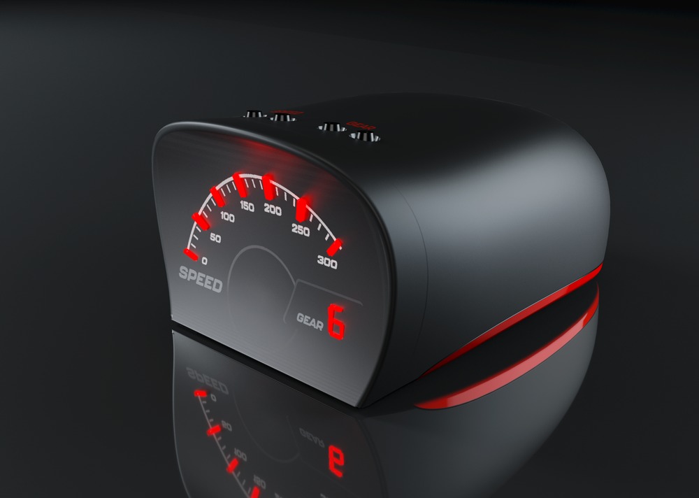 Netzgebundener Masturbator im sportlich-eleganten Design mit LED-Tacho-Anzeige.