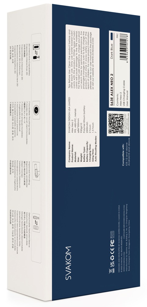 Alex Neo 2 von Svakom ist ein vollautomatischer Maturbator, welcher mit einer raffinierten Stoßfunktion in 7 Intensitäten zu Dir kommt. Dies lässt sich einfach üer Knopddruck am Toy steuern oder aber Du steuerst es mit dem Smartphone über die FeelConnect-3-App, die mit ihren drei Hauptfunktionen Dir weiteres Vergnügen bereitet: 1. Long Distance Control (jederzeit von überall auf der Welt), 2. Verbindung zu interaktiven 2D-Videos und 3. interaktive Webcam-Funktion.