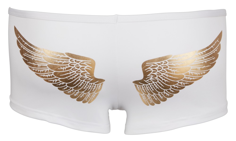 Weiche Mikrofaser-Pants mit goldenen Engelsflügeln auf der Rückseite. Der Reißverschluss am Beutel macht den trendigen Look perfekt.