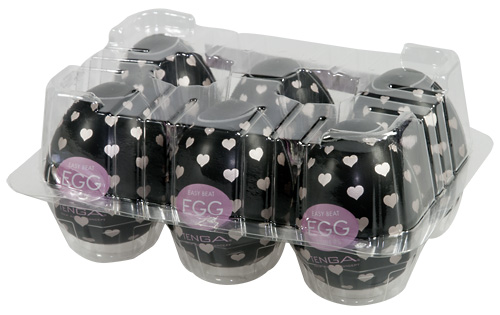 6 Masturbatoren in Ei-Form im witzigen Eierkarton, mit spannender Herzstruktur im Inneren. In der Hülle befindet sich ein stark flexibler Masturbator, der wie ein Sleeve über den Penis gestülpt wird und sich jeder Größe anpasst. Beiliegend ist auch eine Gleitmittelprobe von Tenga, die zusammen mit dem Masturbator für ultimativen Genuss genutzt wird.