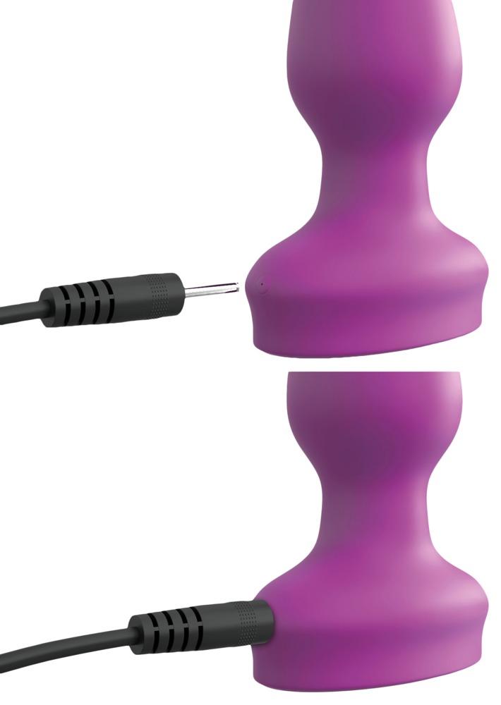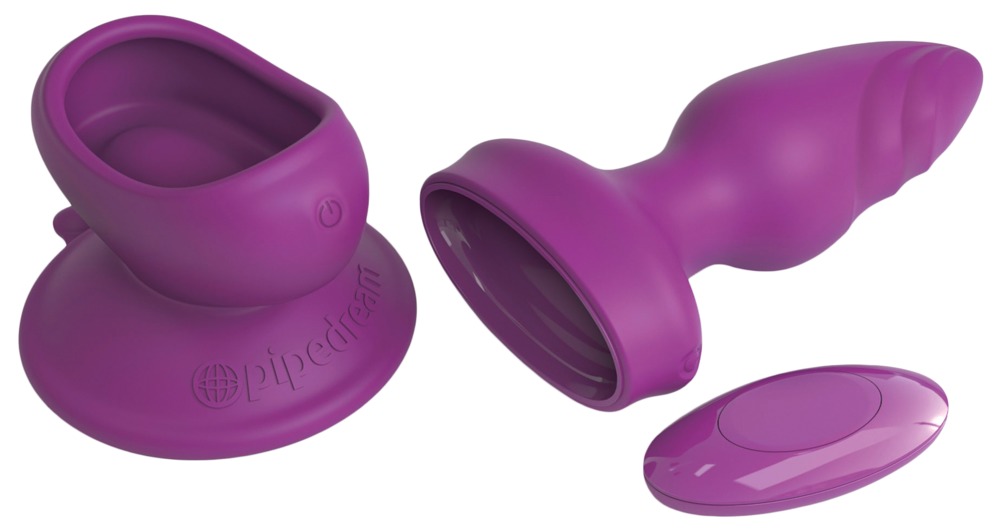 Reizstrukturierter Vibro-Analplug mit einfühlsamer Spitze und (abnehmbarem) Saugfuß für handfreien Solo-Spaß. 10 abwechslungsreiche Vibrationsmodi sind mit der kabellosen Fernbedienung bequem steuerbar – auch vom Partner. Die Fernbedienung hält magnetisch an der Basis und kann so nicht verloren gehen. Die breite Basis des Plugs sorgt für sichere Handhabung beim Verwöhnen ohne Hineinrutschen. Auch längeres Tragen ist somit möglich. Dazu ist der Vibro-Analplug wasserdicht und kann getrost mit in die Badewanne oder unter die Dusche genommen werden. Wiederaufladbar – inklusive USB-Ladekabel und Batterie (CR1620) für die Fernbedienung.