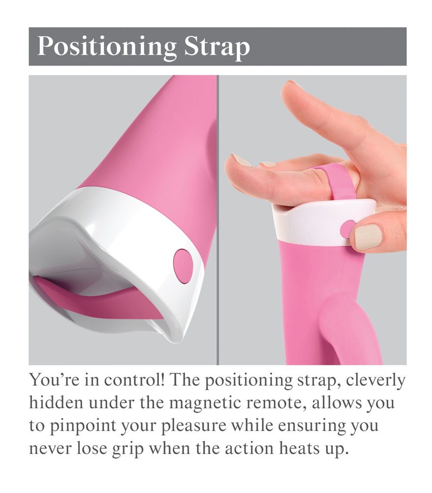 Dieser besondere Rabbitvibrator überzeugt mit seinen vielseitigen Einsatzmöglichkeiten und den zwei starken Motoren. Der Saugfuß ist abnehmbar und im eleganten Design für handfreien Solo-Spaß. Ist der Saugfuß abgenommen, kann die Fernbedienung abgenommen werden, um die 10 Vibrationsmodi auch aus der Ferne zu steuern und nicht nur an der Basis. Die Fernbedienung hält magnetisch an der Basis und kann so nicht verloren gehen. Bei Solo- oder Paar-Spaß ist auch der Haltegriff spannend, der sicheren Halt garantiert. Dabei gleitet das zarte Silikon wie von selbst hinein und der ergonomische Schaft erwischt die G-Zone für punktgenaue Stimulation, während der Klitorisstimulator die Klitoris angenehm bespielt. Inklusive USB-Ladekabel und Batterie für die Fernbedienung: 1 x CR1620.
