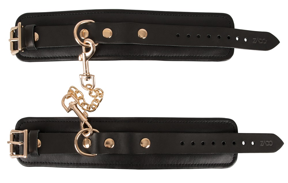 Diese Handfessel ist aus besonders hochwertigem Leder, welches chromfrei gegerbt wurde. Die Innenseite ist gepolstert und schmiegt sich so perfekt an den Handgelenken an. Der edle Look des Leders wird durch die goldenen Details an Schnalle und Kette der Verbindungskette verstärkt. Also perfekt für alle die, die es extravagant mögen.