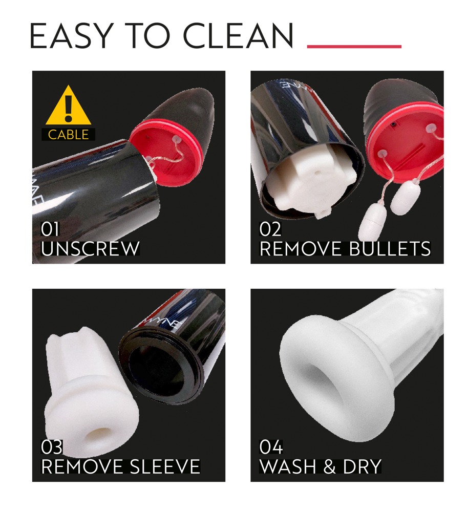 Der Sleeve ist zur einfachen Reinigung herausnehmbar. Wir empfehlen zur Renigung einfach (warmes) Wasser zu benutzen, bei Bedarf Toycleaner.
