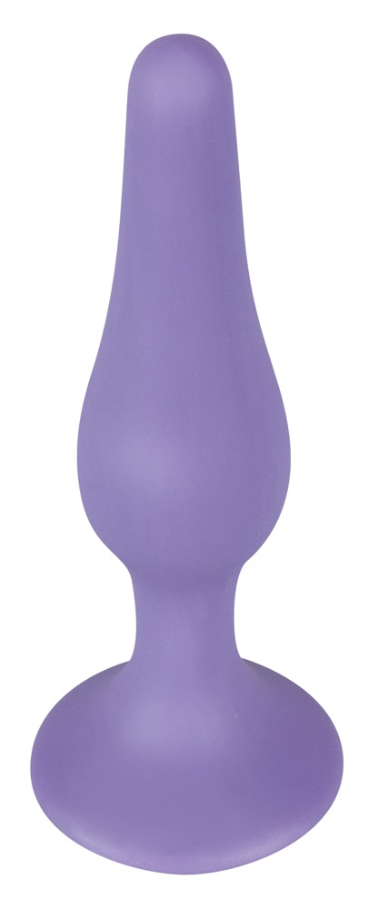 Lilafarbener Silikon-Analplug mit Saugfuß. Spüren Sie, wie er mit seiner schmalen Spitze in Sie eindringt und Sie mit dem dickeren Schaft ekstatisch reizt.