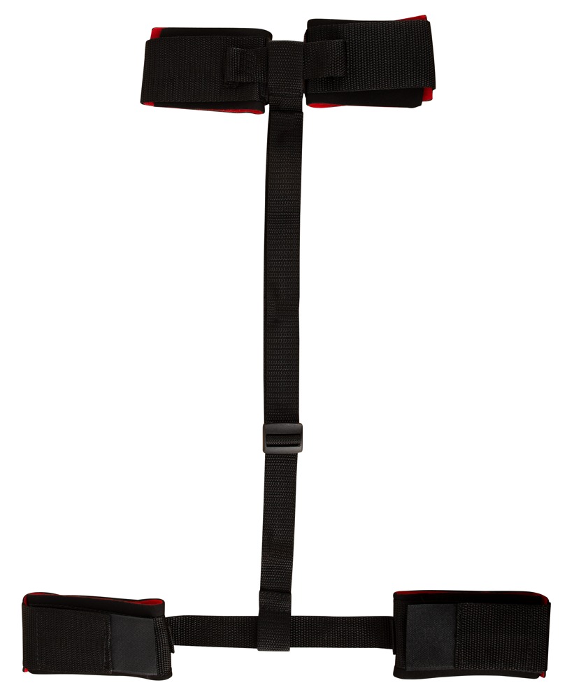 Hand- und Fuß-Manschetten an Verbindungsleine (Länge bis zu 80 cm verstellbar).