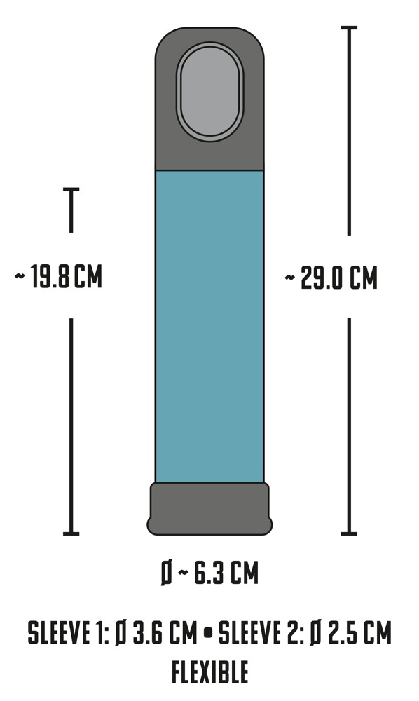 Der transparente Zylinder ermöglicht Ihnen die bequeme Überwachung Ihres Fortschritts, während das LED-Display Ihnen stets den aktuellen Modus und den Ladestand des Akkus anzeigt. Die zwei seidig soften Silikon-Manschetten sorgen für eine komfortable und perfekte Abdichtung des Zylinders zum Körper.