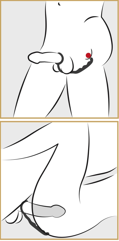 Penisring mit "Lusthaken" zur Stimulation IHRES oder SEINES Perineums. Ring-Ø ca. 3 cm (dehnbar), "Lusthaken" 14,5 cm lang , Ø ca. 1 cm.