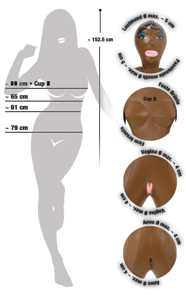Mit 3 einladenden, engen Liebesöffnungen - Vagina, Anus und Mund - bietet diese aufblasbare Schönheit ein realistisches und leidenschaftliches Erlebnis. Die Gesamtlänge von 152,5 cm ermöglicht intensive und lustvolle Erfahrungen.