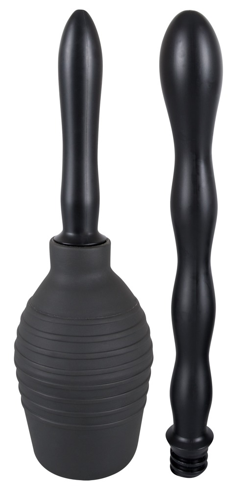 Die schwarze Intimdusche ist ein praktisches Hilfsmittel für intime Hygieneverfahren und Spritzvergnügen. Mit einem großzügigen Fassungsvermögen von 300 ml bietet sie ausreichend Flüssigkeit für gründliche Reinigungsvorgänge. Die Intimdusche ist mit zwei austauschbaren Schraub-Aufsätzen ausgestattet, die mit Spritzdüsen versehen sind, um unterschiedliche Reinigungsbedürfnisse zu erfüllen.