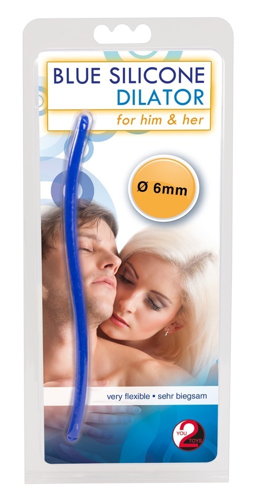Geschwungener, sehr biegsamer Harnröhren-Dehner mit nahtlos gefertigter, abgerundeter Spitze für leichtes Einführen. Dunkelblau. Gesamtlänge 16,5 cm, Ø 6-7 mm. Material: Silikon.