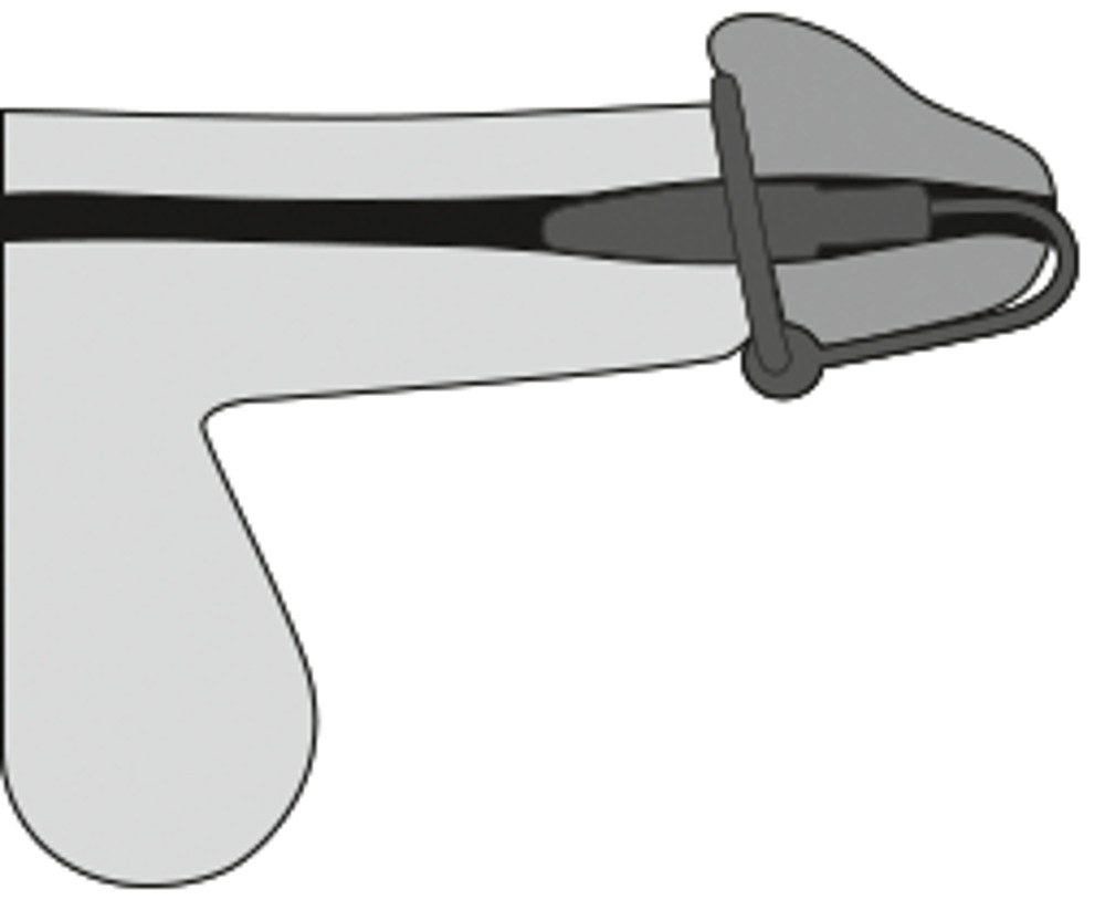 Ring-Innen-Ø 3 cm (sehr dehnbar). Dilator 4,5 cm lang, Ø 0,3-0,8 cm.