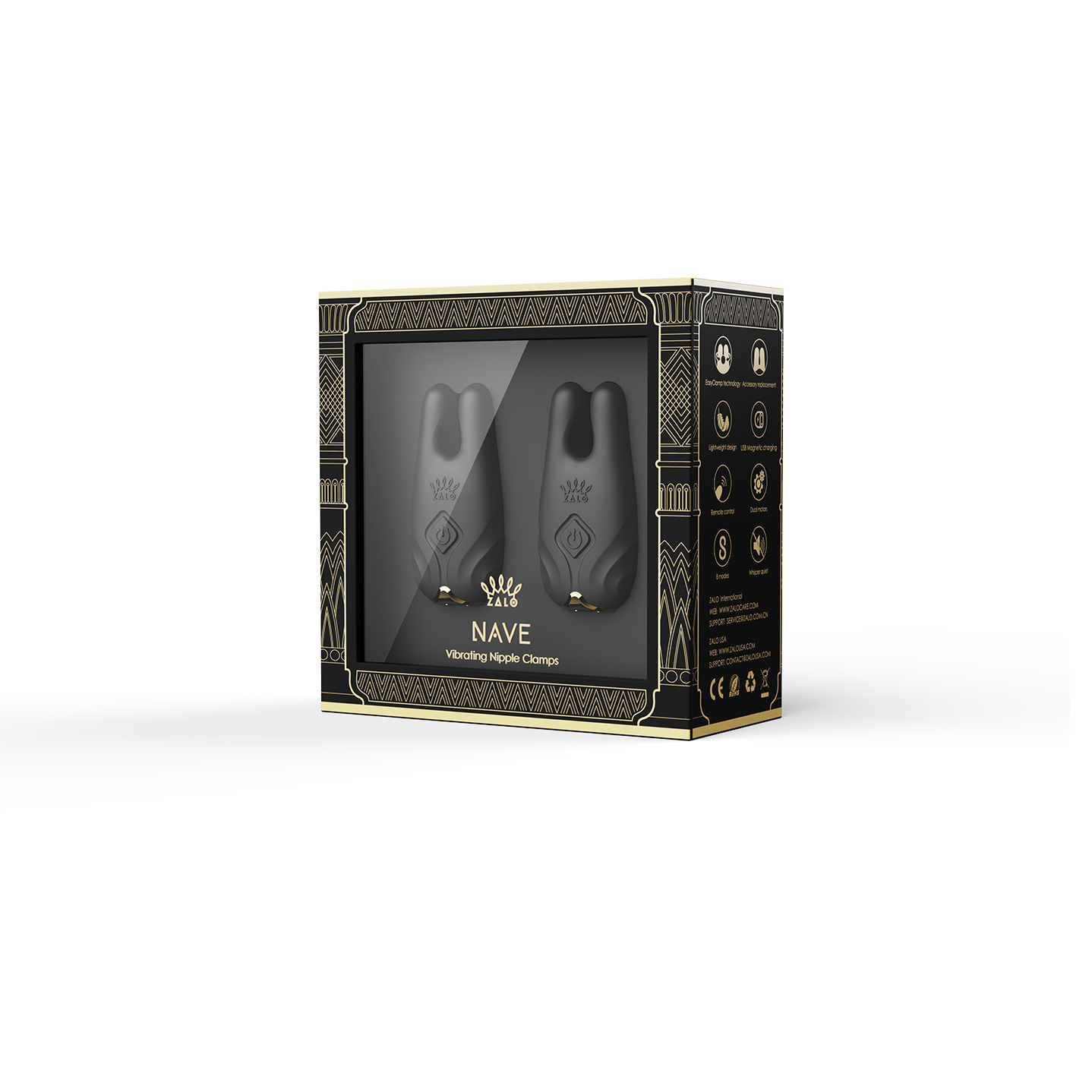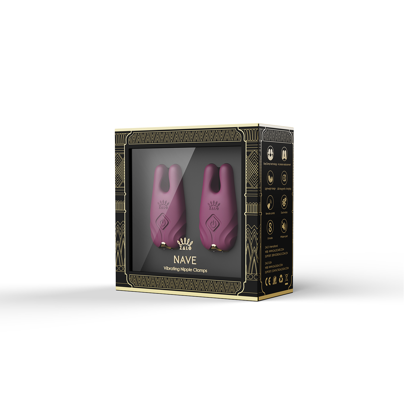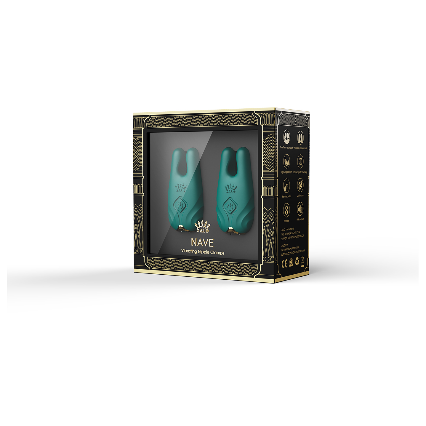 NAVE von ZALO sind Nippelklemmen, mit denen das Nippelspiel legendäre neue Höhen erreicht, durch die kraftvolle Vibration und der einzigartigen EasyClamp-Technologie. Mit dem tollen Design sind sie so schon ein Hinkucker. Die beiden katzenohrenähnlichen Spitzen verfügen über Motoren, die jede Brustwarze mit starken Vibrationen umgibt. Die Vibrationen sind geräuschlos und lenken von dem eigentlichem Liebesspiel somit nicht ab.