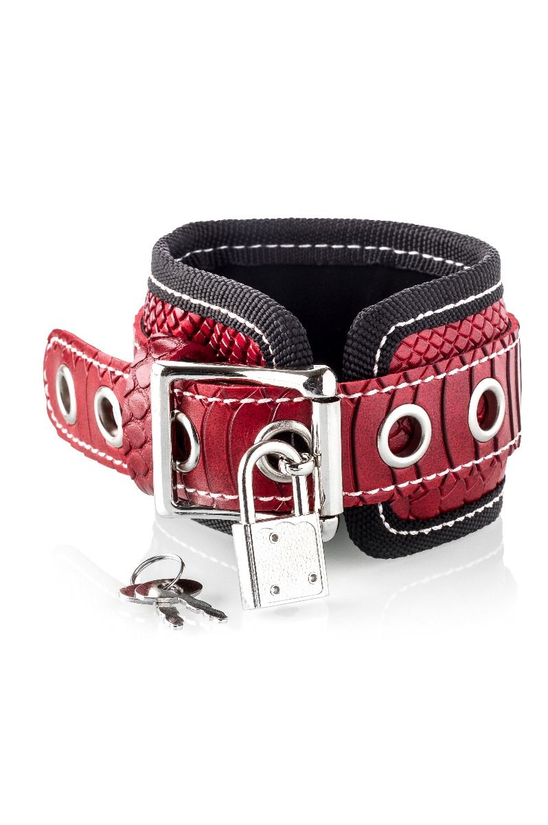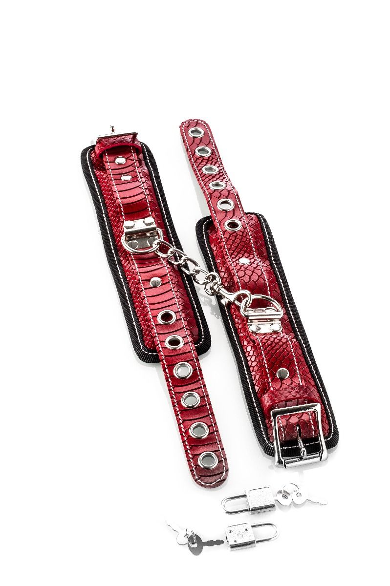 Schicke rote Kunstleder-Handschellen mit zwei Schlössern und 4 Schlüsseln.