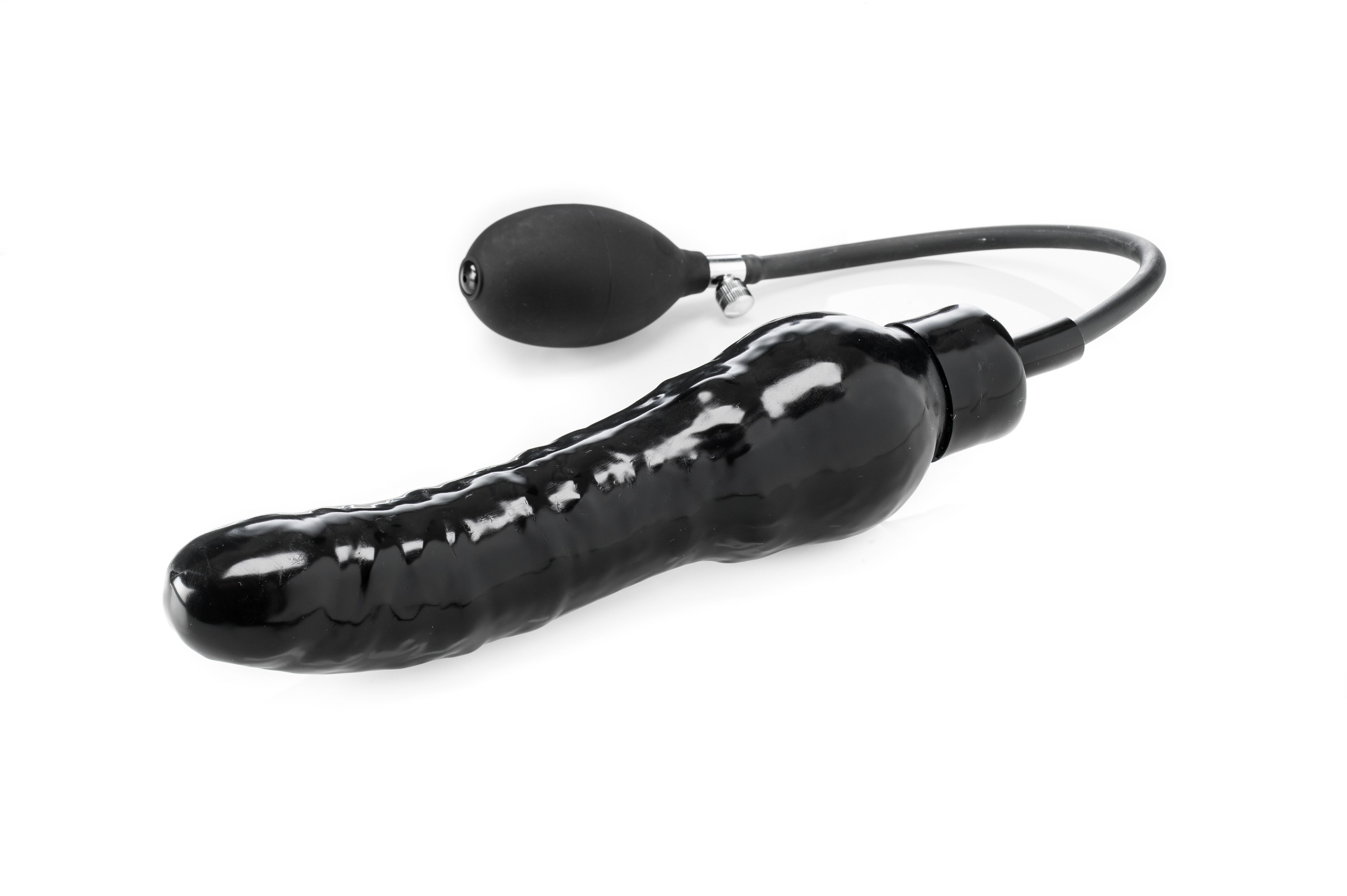 Aufblasbarer Dildo mit pneumatischer Handpumpe und Druckventil, in realistischer Ausführung. Durchmesser individuell anpassbar. In drei Größen erhältlich.