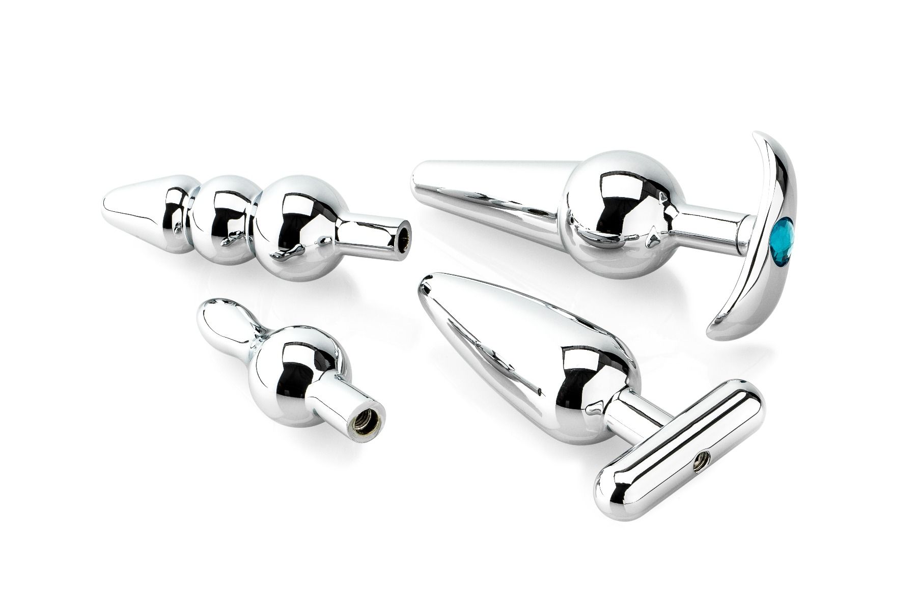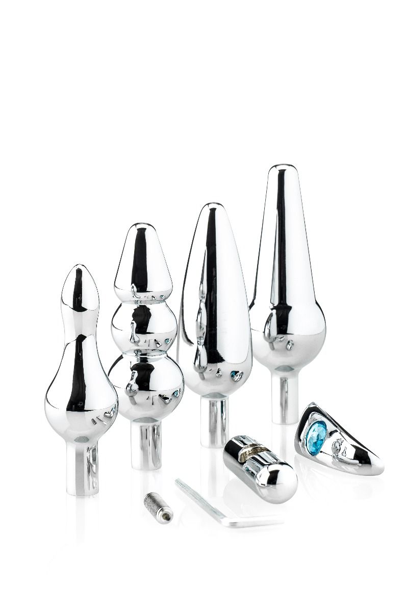 Vier unterschiedlich dimensionierte und geformte Butt Plugs, die Ihr Arschloch auf Trab halten! Die kleinen Griffe können per Schraube oder Inbusschlüssel fixiert werden.