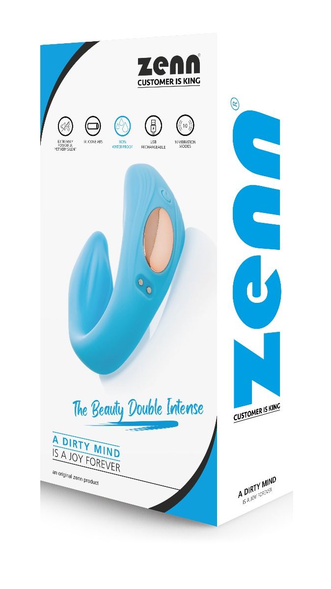The Beauty Double Intense von ZENN der Vibrator für Genuss zu zweit. Seine zwei sehr leistungsstarken Motoren sorgen nicht nur mit den 10 Vibrationsmodi für Abwechslung, sondern stimulieren während der Penetration gleichzeitig Klitoris und G-Zone. Da er vollständig tauchfähig ist, ist er einem Spiel mit / im Wasser nicht abgeneigt. Lass Dich von Deinem Gegenüber doch einfach mit einem Vibrationsmodi überraschen, während er/sie die Fernbedienung betätigt.