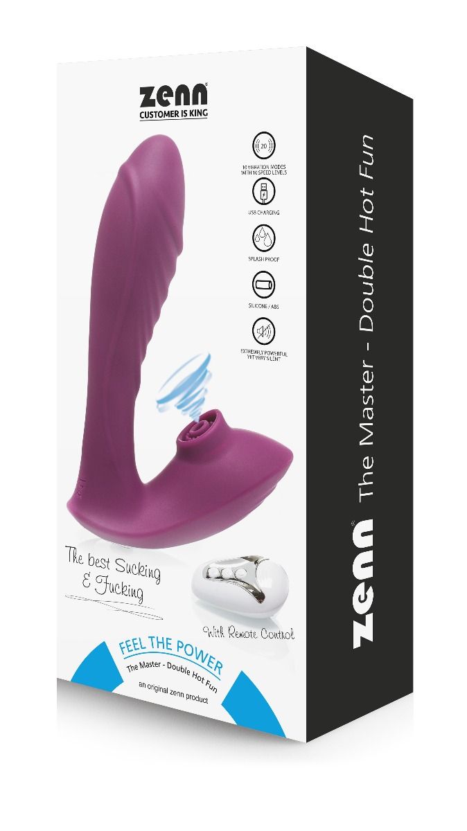 Die Fans von saugenden Vibratoren werden den Master Sucker gar nicht mehr aus der Hand legen wollen! Machen Sie sich auf einen doppelt umwerfenden Orgasmus gefasst, der gleichzeitig die zwei erogensten Zonen Ihres Körpers verwöhnen wird, und zwar genau so, wie sie schon immer stimuliert werden wollten! Individualisieren Sie Ihre Sexerfahrung mit den 10 unterschiedlichen G-Punkt-Stimulationen und den 10 unterschiedlichen Geschwindigkeitslevels.